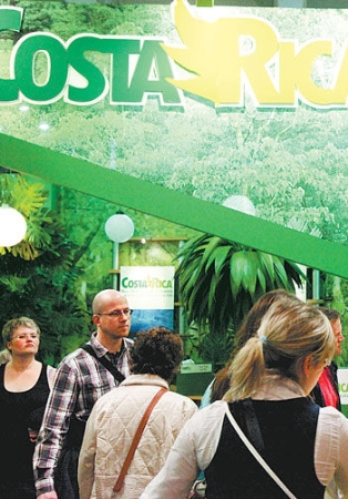 3月11日,人们在哥斯达黎加特色生态展位前参观咨询。当日,为期5天的第46届柏林国际旅游交易会落幕。根据德国联邦旅游经济协会初步统计,会上签署的意向协议金额超过60亿欧元(约78.6亿美元)。