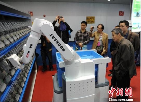 重庆电科院工程师欧熙说,这个灵活自如的机器人,是重庆市电力公司电力科学研究院电能表柔性自动检定系统的一部分。其采用仿生学原理设计,可实现电能表检测过程中周转箱拆垛、取表、定位、上表、卸表等操作全过程自动化,并运用机器视觉技术实现了机器人运动路径自动示教,机械手精确定位和产品外观识别等功能,目前已在电科院计量检定车间投入使用。