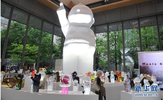 5月15日,日本东京,观众观看香港、日本创意家以“天天向上”为主题的创意雕塑作品。当天,为庆祝中国香港特别行政区成立15周年,由香港特别行政区东京经济贸易代表部主办的“天天向上”创意雕塑展在东京举行。展览以香港艺术家荣念曾创作的5米高“天天向上”创意毛坯雕塑为主题,并展示了来自中国香港和日本的艺术家在毛坯雕塑上绘制的不同表情和服饰的130件作品。(来源:新华网)