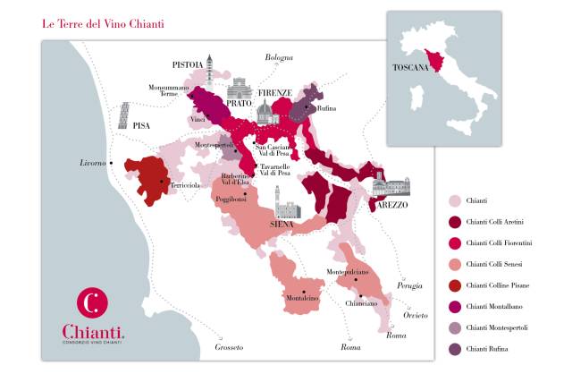 ▲ 包括基安蒂·锡耶纳丘(Chianti Colli Senesi)DOCG;基安蒂·路菲娜(Chianti Ruffina)DOCG;基安蒂·佛罗伦萨丘(Chianti Colli Fiorentini)DOCG;基安蒂·比萨丘(Chianti Colli Pisane)DOCG;基安蒂·阿莱蒂尼丘(Chianti Colli Aretini)DOCG;基安蒂·蒙达巴诺(Chianti Motalbano)DOCG;基安蒂·蒙达斯拍托利(Chianti Montespertoli)DOCG。