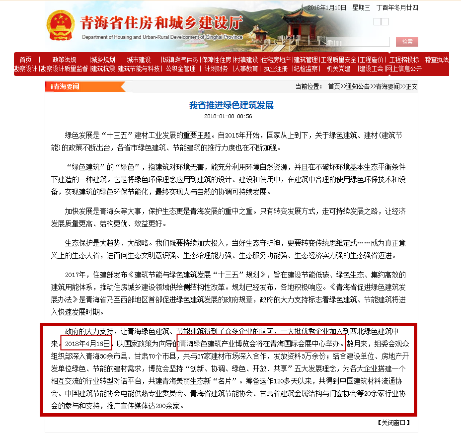 政府的大力支持,让青海绿色建筑、节能建筑得到了众多企业的认可,一大批优秀企业加入到西北绿色建筑中来。2018年4月16日,以国家政策为向导的青海绿色建筑产业博览会将在青海国际会展中心举办。数月来,组委会观众组织部深入青海30余市县、甘肃70个市县,共与37家建材市场深入合作,发放资料3万余份;结合建设单位、房地产开发单位绿色、节能的建材需求,博览会坚持“创新、协调、绿色、开放、共享”五大发展理念,为各大企业搭建一个相互交流的行业转型对话平台,共建青海美丽生态新“名片”。筹备运作120多天以来,共得到中国建筑材料流通协会、中国建筑节能协会电能供热专业委员会、青海省建筑节能协会、甘肃省建筑金属结构与门窗协会等20余家行业协会的参与和支持,推广宣传媒体达200余家。