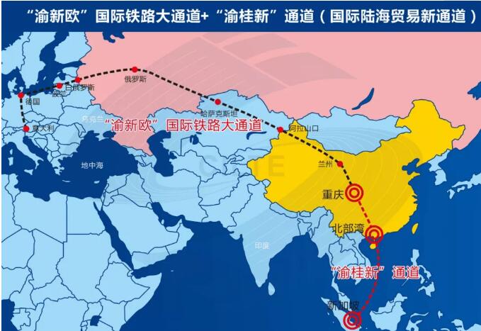 重庆是西部大开发的重要战略支点,是“一带一路”和长江经济带的联结点。重庆向东有长江黄金水道、向西有中欧班列(重庆)、向南有“国际陆海贸易新通道”、向北有“渝满俄”班列,立足内陆、面向国际;