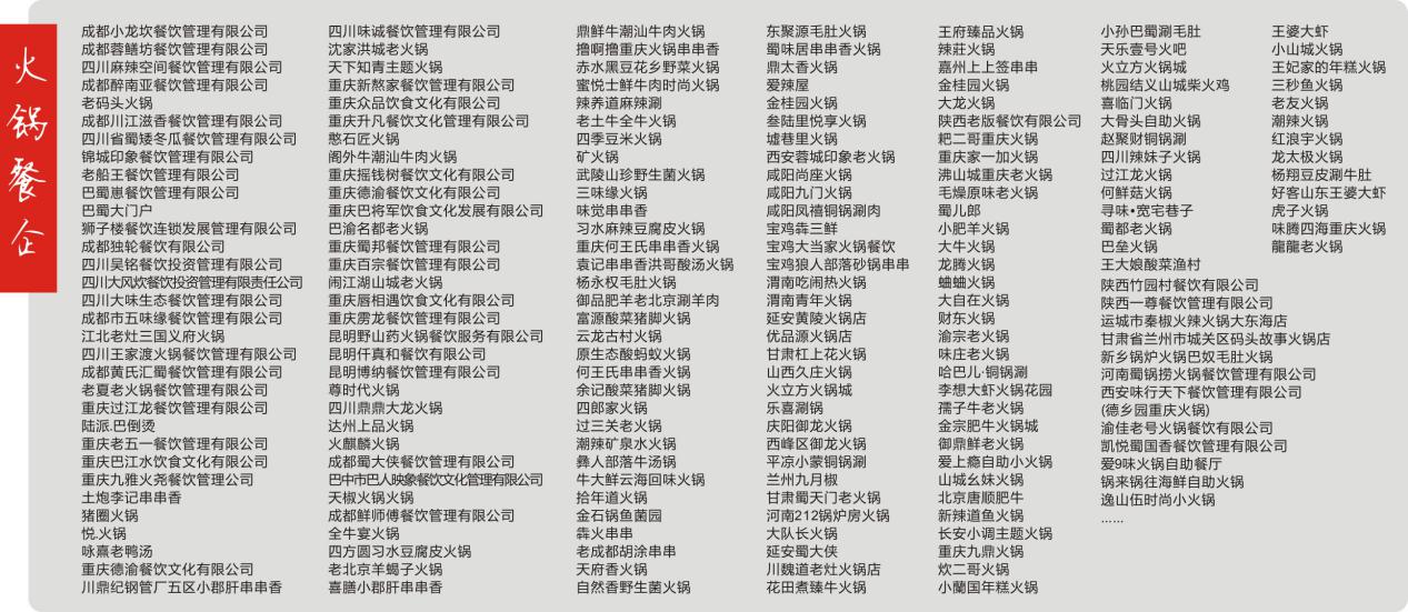 附:海名第八届成都餐饮火锅食材用品展4月地推市场名录: