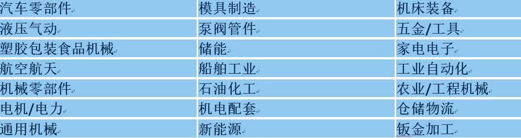 智能制造;数字化工厂整体解决方案/应用软件;MES、ERP、PLM、WMS、SRM;5G;工业互联网/应用平台/配套技术;传感器;PLC、BC、FTLE、AR/VR、RFID、PDA;网关、工业仪表;工业自动化/系统集成;柔性加工技术;自动化单机/生产线;工业机器人/机器人工作站/应用解决方案/配套设备;非标自动化设备;智能仓储/AGV/RGV